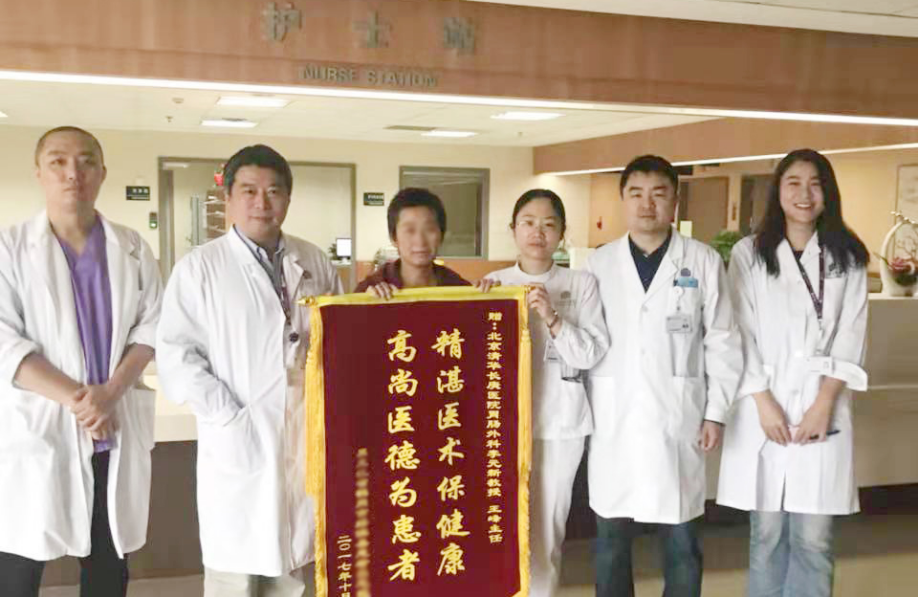 术后吕女士在重症监护病房进行综合治疗,病情逐步稳定,后转回普通病房进行后续的营养支持治疗后,最终顺利出院。半年后,患者再次来到北京清华长庚医院进行肠瘘的确定手术治疗,手术历时8个小时,李元新主任带领团队为患者实施了小肠造口还纳和腹壁重建,患者最终顺利出院,可以基本正常进食。