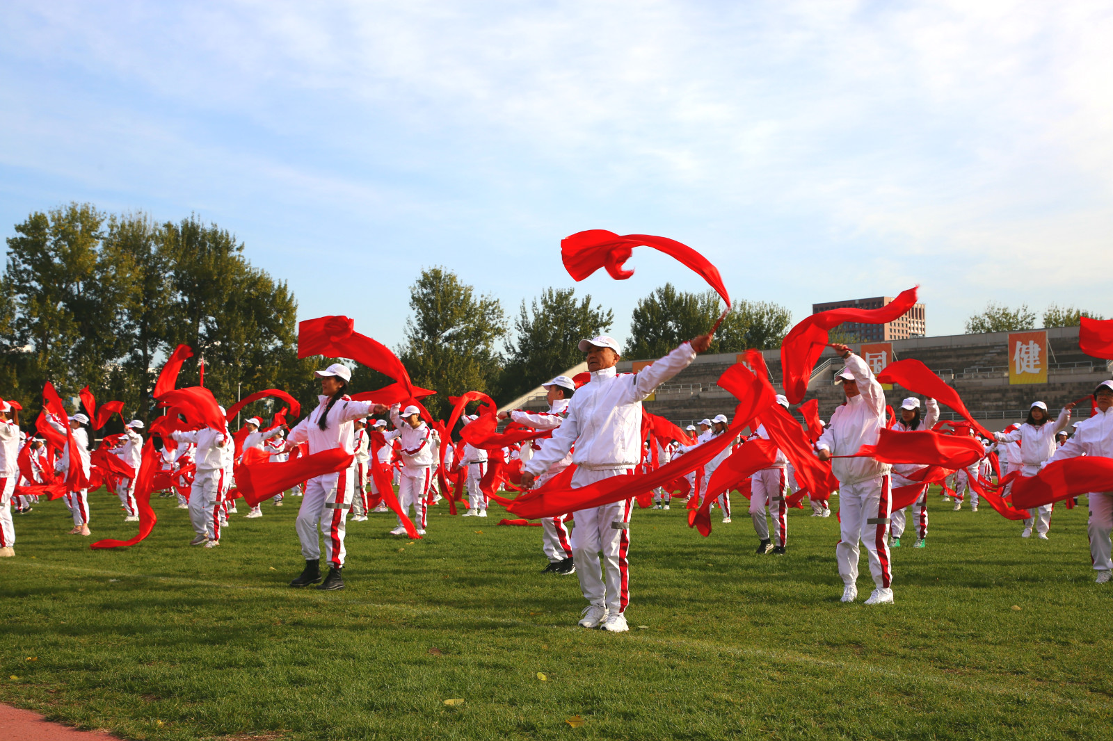 随后,近500名清华长庚员工与志愿者联袂表演的广播操与红绸团体操惊艳亮相。大家舞动着手中的红绸,踏着街拍奔跑、跳跃,刚柔并进、高低起伏,现场汇聚成一片热情壮观、喜庆欢腾的海洋。