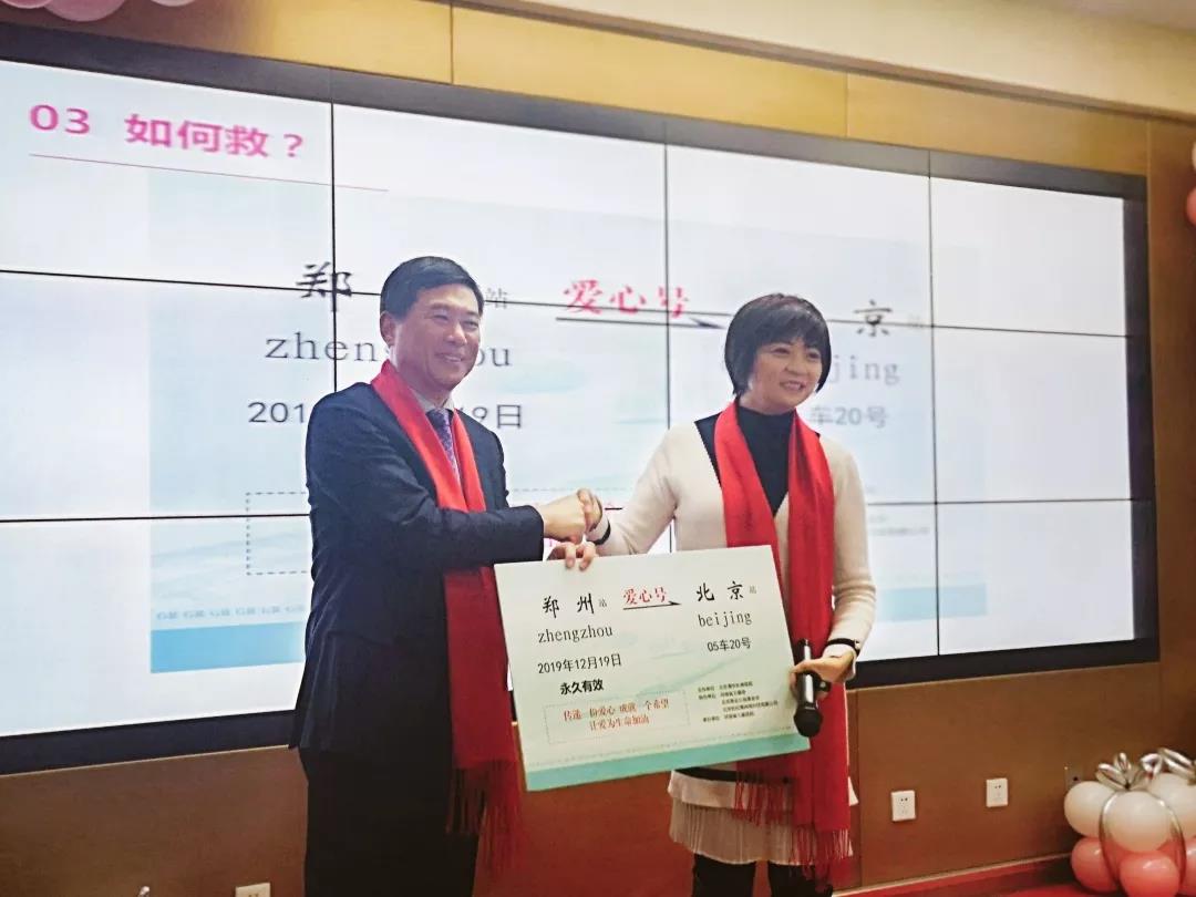 来自河南省长垣市的小哲,作为被救助的患儿代表来到了活动现场。2019年9月,小哲因急剧腹痛伴有呕吐被送往河南省儿童医院,确诊为肝脏破裂腹腔积血,需要进行肝移植手术,经河南省儿童医院联系,小哲转诊至北京清华长庚医院并成功接受亲体肝移植手术,并得到了北京美业基金会的资金援助。小哲在妈妈的带领下上台,向北京清华长庚医院、河南省儿童医院、北京美业基金会赠送锦旗,感谢救命之恩。北京清华长庚医院未来将为美业基金会帮扶的肝移植患儿提供全力支持。