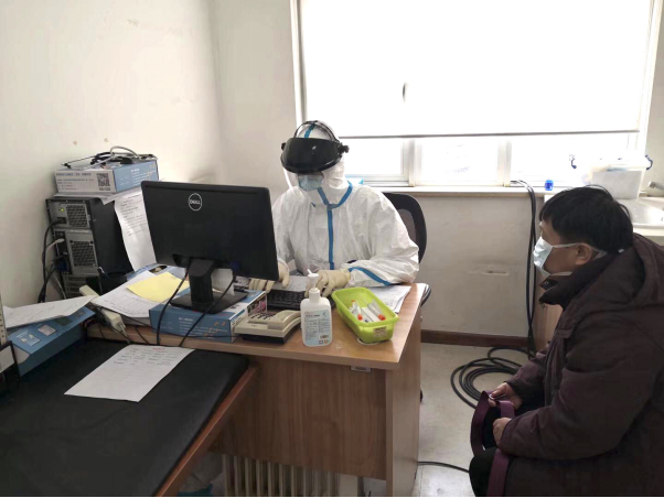 图为王瑞刚医师在发热肠道门诊接诊患者