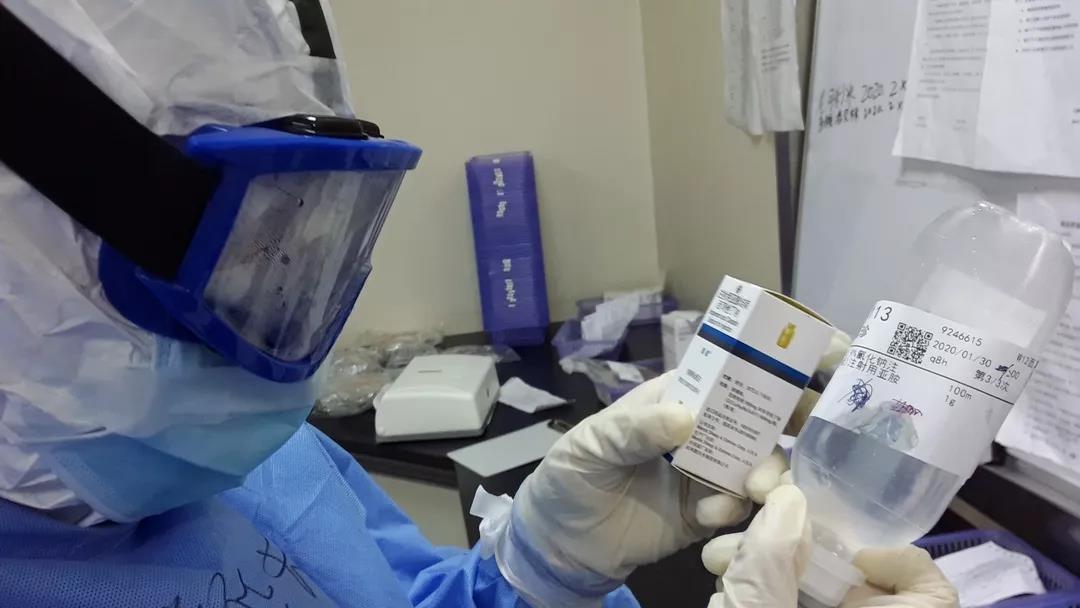 护理人员隔着雾蒙蒙的防护镜反复确认给药