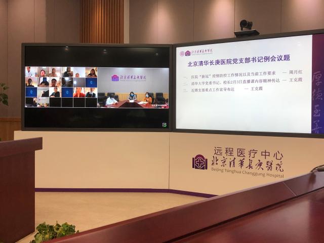 “提高政治站位,强化组织保证,动员广大党员积极投身到疫情防控工作之中……”2月4日,北京清华长庚医院党支部书记专题例会以视频电话会议形式召开,并连线了在武汉支援的医疗队队员。