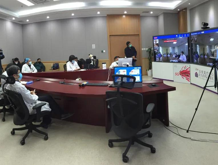 此行旨在运用5G环境和新技术手段,实现关口前移,形成“医院救治、区域防控、个人防护”的多极联动、群防群控的防疫体系,通过建立远程医疗队,实现“前方临床救治,后方多学科远程支持”相结合的科学救治模式。