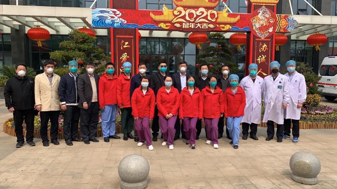 董家鸿执行院长一行与清华长庚援鄂医疗队人员合影