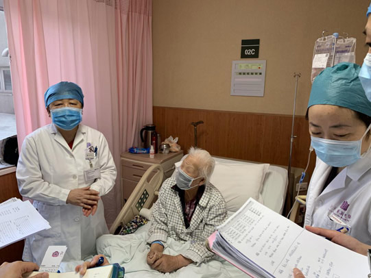 (图2:廖秦平与张蕾带领查房,为肿瘤患者制定化疗方案)
