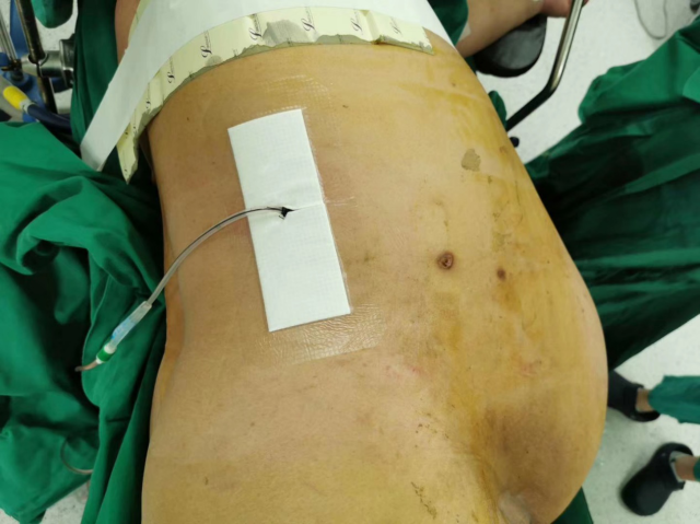 患者术后仅右侧腰部留置一根肾造瘘管