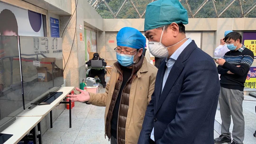 2月23号晚上9点,我和团队一起从北京西站出发,坐上了久违的绿皮火车,大家既忐忑,又期待,讨论了很久智能防疫设备部署和疫区实地考察计划。(当然,我们全程都严实的带着口罩,做了充分的防护)。第二天凌晨抵达目的地—武昌站,这是号称九省通衢大武汉往常最中心、最热闹的车站。下车后的站台,空荡荡,冷清清,到处弥漫着消毒水的味道,外面下着淅淅沥沥的小雨,刮着冷冷飕飕的北风,偌大的车站里,一列火车、一位列车长、一行六人和十二个箱子。行驶在封城中的武昌大街上,一边是摩登都市,一边又阒无一人,一切都像是科幻电影里的场景。和大家说实话,那个瞬间,那种莫名的凄凉,真的会恐慌,会伤痛。为武汉,为生命,团队被激发出更强烈的使命感,就想立刻投入与疫情的搏斗,于是我们未作停歇就直奔武昌区政府,打响了国家远程医疗队在抗疫援汉的第一枪。