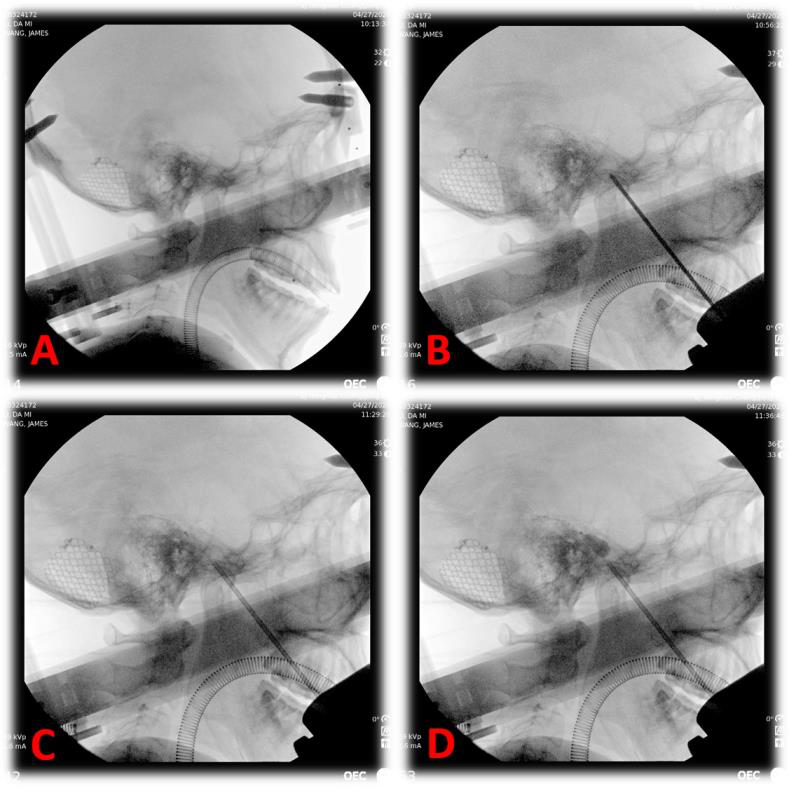 这种技术是用微创经皮穿刺的方法,在颅底一个叫迈克尔腔的地方打起一个花生米大小的小水球,机械压迫损毁三叉神经节和部分神经根以达到止痛目的。这种方法创伤小、安全可靠、恢复快、花费少。但手术需要精确定位,手术最大的挑战是要把穿刺针穿入10公分外的卵圆孔,大约有衬衫扣子1/4的大小。大多医院限于条件,都是在X线、C形臂、CT引导下徒手进行。