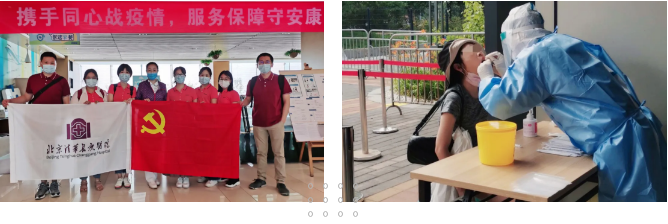 6月18日,在党支部书记会上,党委书记周月红指出当前最重要的工作是抗疫,党支部要做好党员群众的思想工作,发挥政治引领作用,发挥党员先锋模范带头作用,要主动关心关爱员工,特别是外派医疗队、外派核酸检测人员以及家住中高风险区域的人员,做好员工的心理疏导工作。行动先行,党委副书记王克霞、工会主席郑卓肇、常务副主席王壮、纪检监察办公室副主任林琼菁等人到行政支援一线送冰水慰问,魏来副院长、党办副主任高茹、工会常务副主席王壮、护理部副主任赵文静等人赴昌平、大兴核酸检测现场慰问我院医疗支援人员。