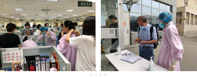 17日起,行政人员非紧急办公人员,轮番出动,全力支援门诊,“守护天使”的队伍迅速壮大,人多的地方有他们,疏散人流、强化秩序;有问题的地方有他们,宣导政策、稳定情绪;茫然的地方有他们,指导操作、帮助预约;抱怨的地方有他们,认真倾听,尽力帮助。党委书记周月红,党委副书记、院长董家鸿院士也来到一线,调研问题,及时决策。粉色的隔离衣和白色的医疗服一起,在患者间穿梭,退却恐慌,稳住不乱。