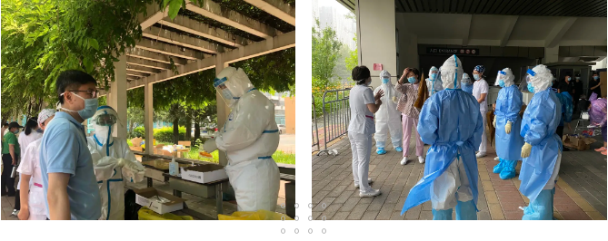 17日,40余名行政人员出动,支援医疗大楼及核酸筛查门诊,引导维护秩序。下午,15名护理人员紧急出发支援大兴区核酸检测。医院随后召开全院干部会,党委书记周月红向全院传达北京市疫情防控工作精神,人力资源部副部长柳玉倩强调医院一级防控状态下全员管理要求,总执行长周碧琴宣导针对疫情新形势医院因应措施。院长董家鸿勉励大家:无需恐慌,医院经受住了前一阶段疫情的大考,现在仍要坚定信心继续打赢防疫战。