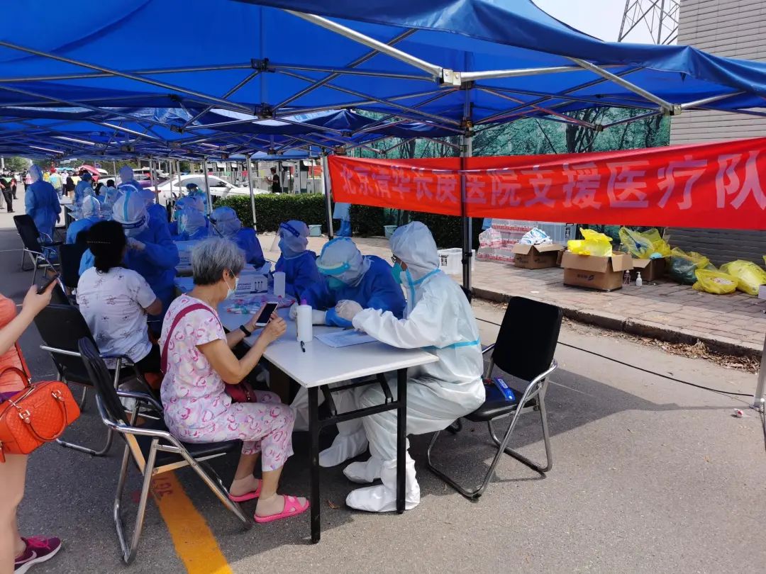 图为赴清华大学、昌平区回龙观社区核核酸检测医护技支援团队