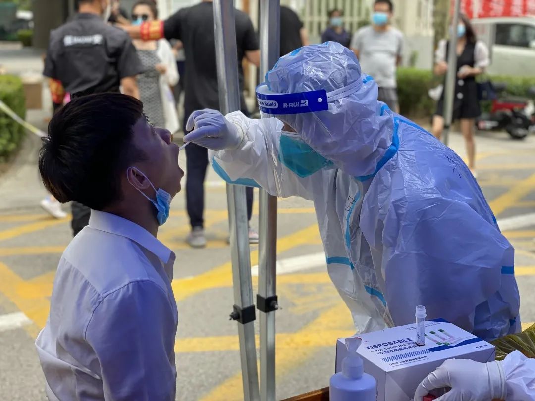 图为清华长庚队员采集咽拭子(乔赛男/摄)