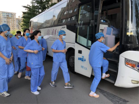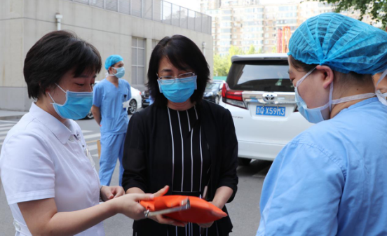 6月30日下午16时,北京清华长庚医院抽调30名医、护、技人员组成支援小分队,由13B病房护士长袁敏、12B护士长郭凯华分别带队,第四次进驻昌平区回龙观,支援2个检测点,特为晚归的上班族们进行咽拭子采集。党委书记周月红、党办副主任高茹、护理部副主任赵文静为大家送行。