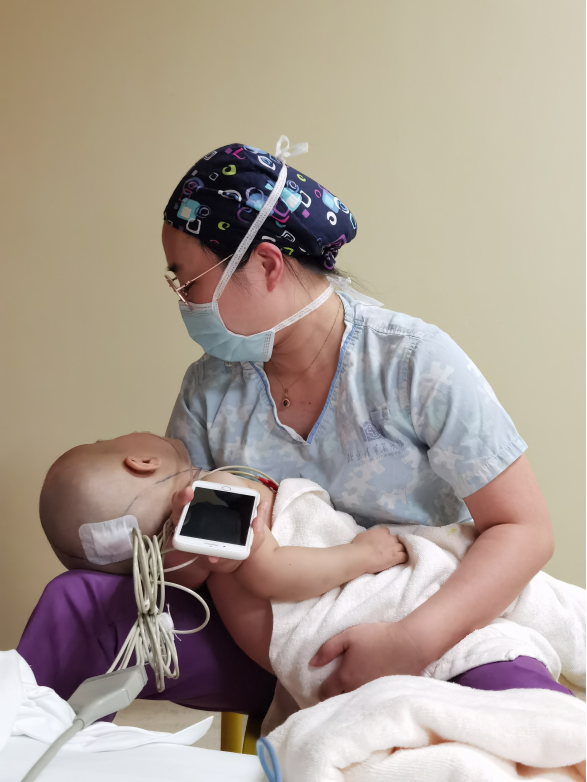 北京清华长庚医院9月1日电 9月1日早晨7点,神经外科医师董生早早地走进ICU病房进行查房,他看到了这样一幕——ICU护士钱迎正抱着2岁的患儿哄着,手机里放着《小毛驴》。患儿因脑积水,刚在昨日由神经外科进行了分流手术。ICU不允许看护,医护人员就成了这些小患儿临时的“爸妈”。“其实哄患儿在ICU是司空见惯的事儿。”钱迎说,今年她27岁,和很多护士一样还没有结婚生子,但哄娃的技术已经磨炼得很好,科室接待的最小患儿才五六个月大。这一整夜,一名ICU护士负责看护两名患者,通过观察窗看患者的需求。临近清晨,患儿醒了,钱迎抱了她两个小时,8点下班的时候,手臂已经酸了。(图/神经外科 董生;文/韩冬野)