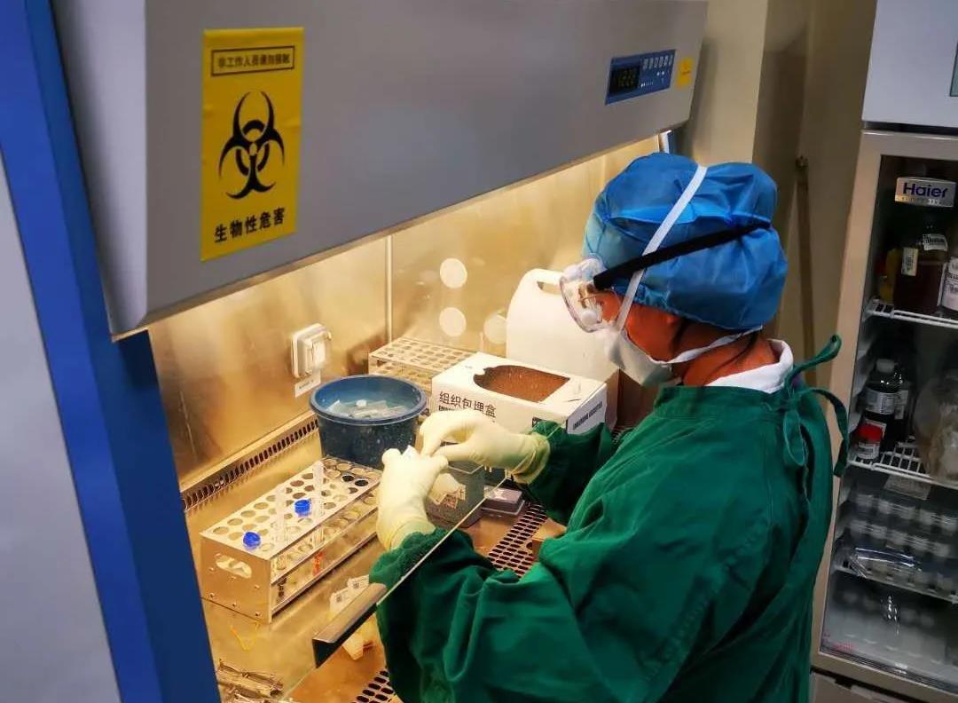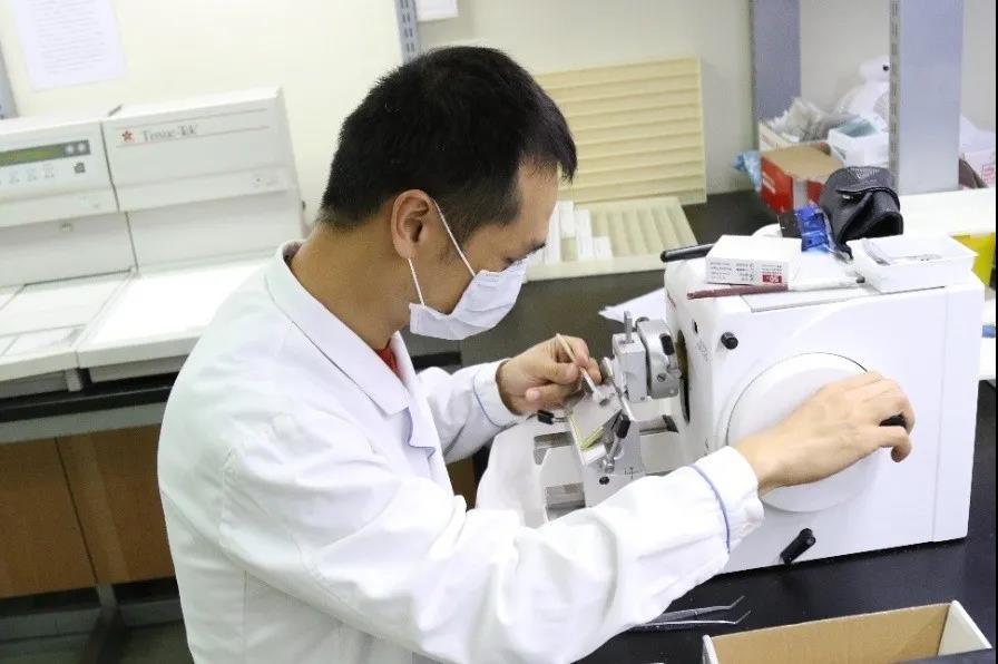 病理技师在进行脱落细胞学制片和石蜡切片。“技师切出一张清晰的好片,医师才能准确地判读。”北京清华长庚医院病理科主任尹洪芳说。
