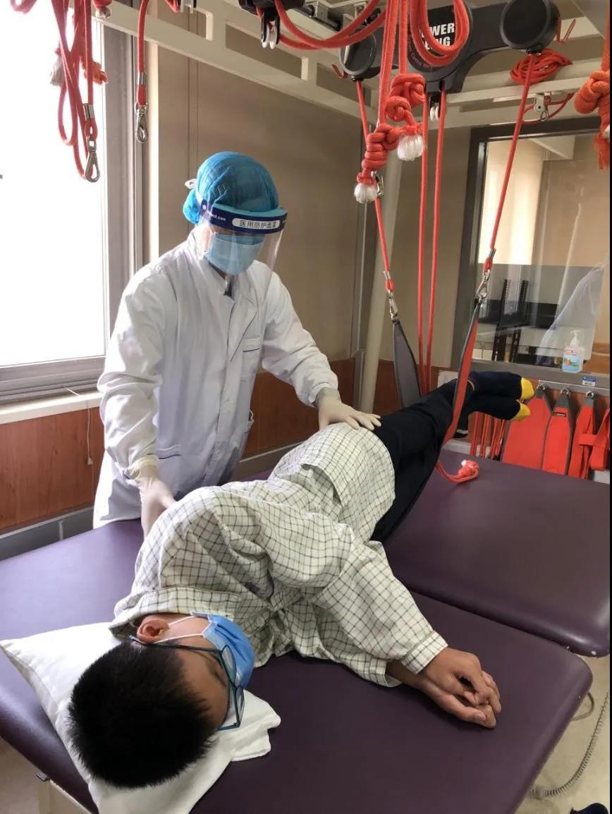 康复技师为患者做康复锻炼、指导。在康复的这条路上,他们在用行动,帮助患者找回身体健康的记忆。