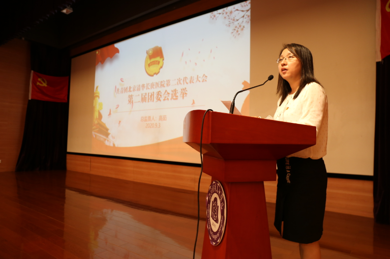 北京清华长庚医院9月11日电 (团委供稿)9月3日,共青团北京清华长庚医院第二次代表大会在院召开,93位团代表审议通过了一届团委会工作报告,并选举产生了北京清华长庚医院第二届团委。清华大学团委书记张婷,北京市医管中心团委负责人李欢莅临大会指导,清华大学教工团委书记李峰,世纪坛医院团委书记张洁,小汤山医院团委书记张琪代表兄弟单位团委出席。院党委书记周月红出席并代表院党委讲话。院党委副书记王克霞、院党委委员、工会主席郑卓肇出席会议。院长董家鸿因另有要务,委托大会主席团向大会召开转达祝贺,并对医院团青工作提出希望和要求。