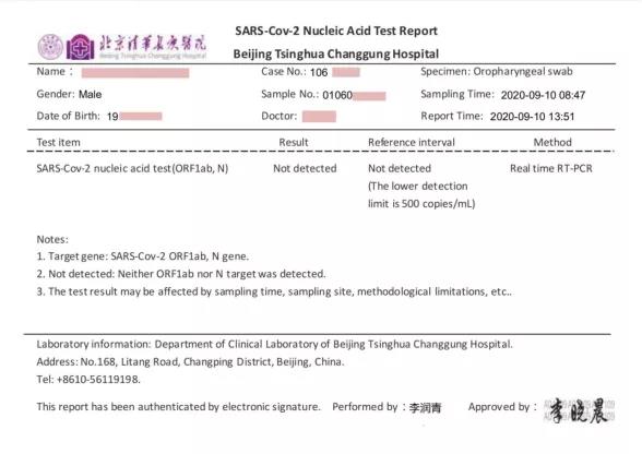 Since September 14th, for the convenience of foreign people, the English version of SARS-Cov-2 nucleic acid test report is available in Beijing Tshinghua Changgung Hospital. Clients and their family members can ask nurses at the phlebotomy registration counter on the first floor to print the English version of SARS-Cov-2 nucleic acid test report. The consultation telephone NO. is 010-56119035, 010-56119198.