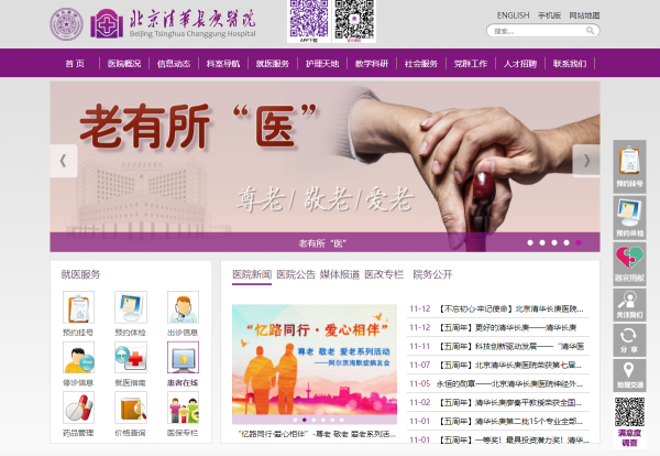 北京清华长庚医院官网及健康小报定期推出尊老、敬老、爱老专题,向老年患者及其家属提供就医指导与健康宣教,方便老人就医。