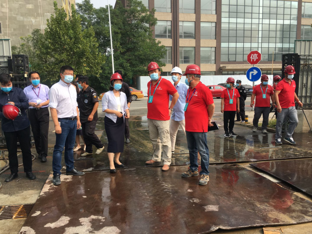 检查组首先来到二期施工现场进行检查,周月红现场向施工负责人询问了施工进度,要求施工单位一定要做好现场安全防范措施,避免出现各类安全事故。