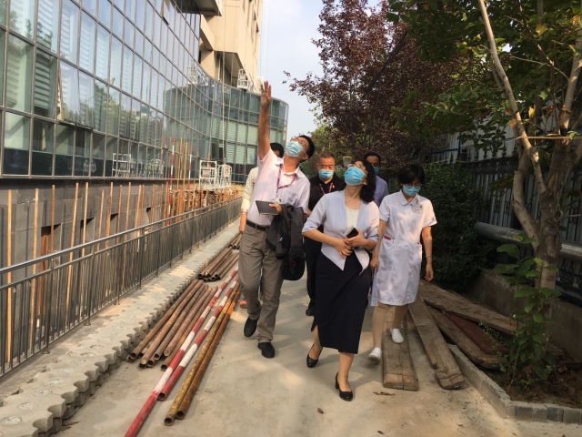 最后,检查组对1号楼通往3号楼的临时通道和公共区域进行安全、环境卫生检查。由于目前此通道是员工、病患、体检人员等人员从1号楼通往3号楼唯一的道路,因此该区域的环境卫生及安全尤为重要。检查过程中发现该通道两侧杂物及杂草较多,施工区域的防护措施不到位,施工材料、垃圾未及时清理等问题,周月红已现场要求部门责任人对存在的问题进行限期整改。