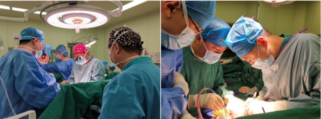 图为北京清华长庚医院肝移植团队徐光勋、宋继勇医师进行换肝手术