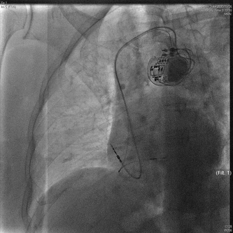 手术过程顺利,术后起搏心电图QRS时限仅112ms,患者症状即刻缓解,手术效果良好。