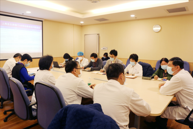 董家鸿指出,党中央、国务院高度重视国内疫情防控形势,全院职工要认真学习领会习近平总书记重要指示精神,坚决克服麻痹思想、厌战情绪、侥幸心理、松劲心态,严格落实‘外防输入、内防输出’措施,做到防控工作常态化。要强化院感防控,专人专班负责,定期开展院内自查和互查,早发现问题,早解决问题,实现院内零感染。严格发热门诊患者闭环管理,实现与普通患者无交叉,保证医院日常工作的正常运行。针对近期国内感染病例与进口冷链食品相关,医院应对患者、家属和陪护相关情况定期排查,根据上级要求,定期对员工进行新冠核酸检测,全面覆盖后勤外包人员。应保障员工充分休息,合理排班,改善员工工作环境,做好心理疏导。