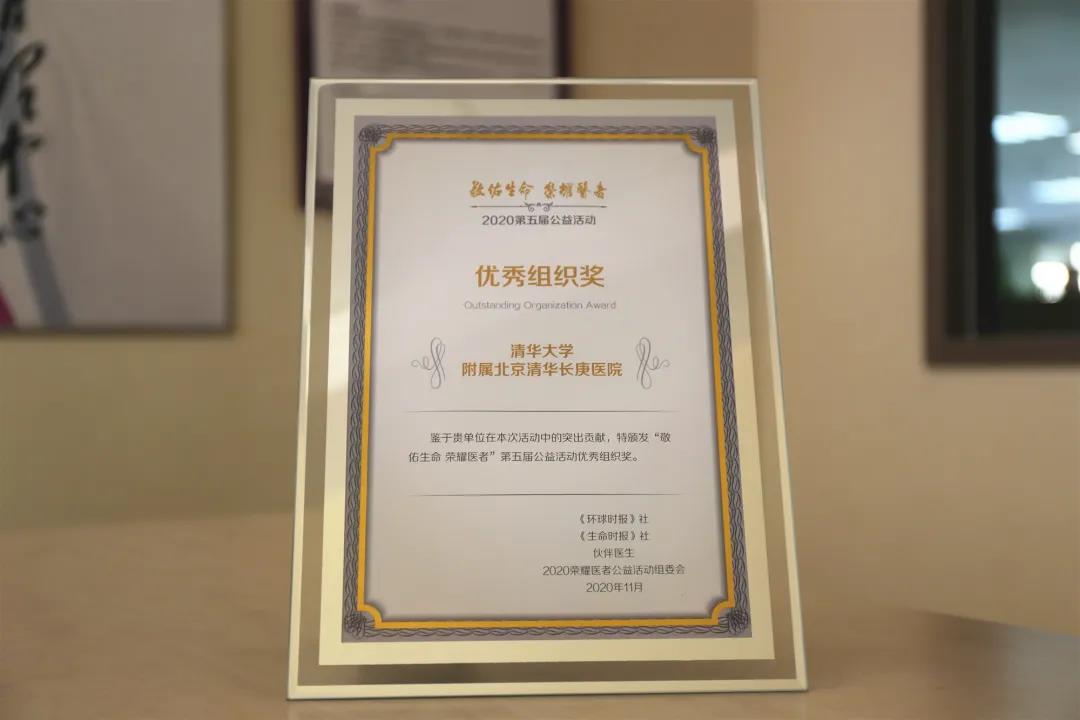 北京清华长庚医院11月26日(通讯员 于悦超)11月25日,由环球时报、生命时报、伙伴医生联合主办的“敬佑生命 荣耀医者”2020第五届公益活动年度盛典在人民日报社举行。清华大学附属北京清华长庚医院骨科主任肖嵩华荣获“专科精英奖(骨科)”,肝胆胰外科执行主任卢倩荣获“青年创新奖”,Liver ICU主任医师张振宇荣获“抗疫先锋奖”,北京清华长庚医院荣获“优秀组织奖”。
