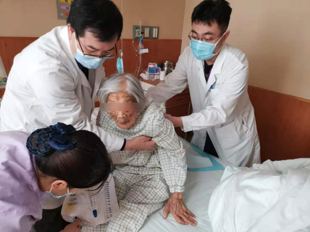 北京清华长庚医院12月2日电(通讯员 韩冬野)12月2日,百岁老人王奶奶出院了!这是目前为止,北京清华长庚医院骨科创伤组接诊的最高年龄的骨折患者。“如果生命就像一部机器,只要发动机还能用,车再老,咱们也得好好修缮,往前看。”送老人出院的骨科年轻医师朱剑津感慨到。