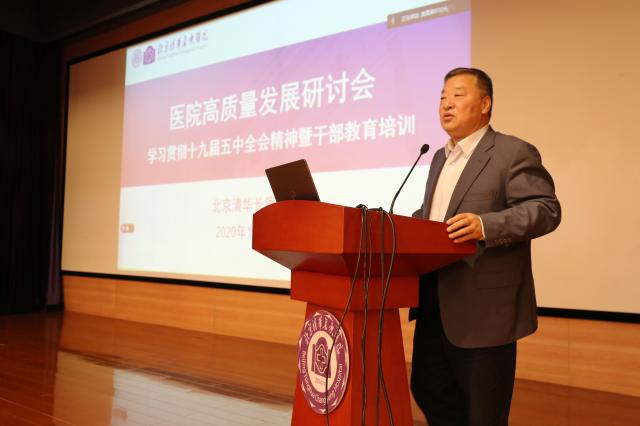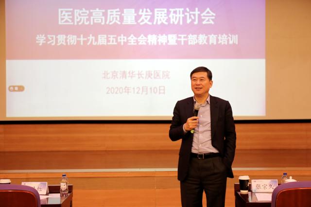 北京清华长庚医院12月11日电 (通讯员 南子钰)12月10日下午,为深入学习贯彻十九届五中全会精神,北京清华长庚医院举办以高质量发展为主题的干部教育培训专题学习研讨会,邀请到清华大学万科公共卫生与健康学院常务副院长梁万年教授,清华大学医院管理研究院常务副院长、首席研究员张宗久教授,清华大学医院管理研究院杨燕绥教授进行专题报告。我院院长董家鸿院士、党委书记周月红等全体院领导、中层干部、二级以上主管参会,会议由党委副书记王克霞主持。