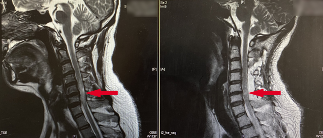 2019年11月,经医院确诊,小晨患有先天性椎管狭窄,这是他常感颈椎不适的根因,而按摩的寸劲,无疑是雪上加霜。核磁影像上,颈5至颈6节段,有一团边界不清的信号影,不排除颈髓髓内肿瘤的可能性。