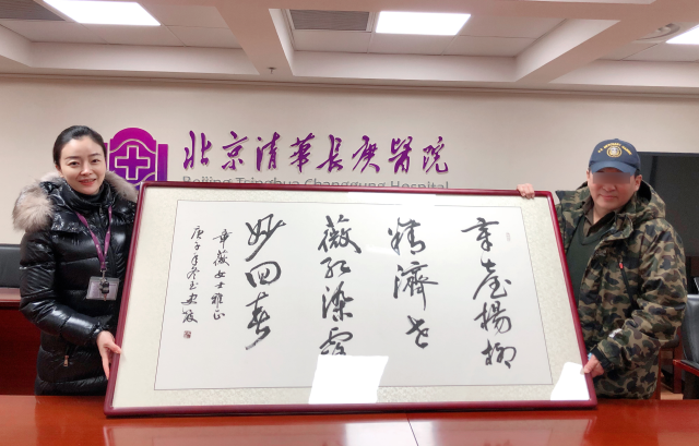 小晨的父亲送来了藏头诗书法和锦旗,得知章薇也曾是一名军人,这位老兵开心地说:“一定要把我们部队的优良传统在医疗工作中发扬下去。”