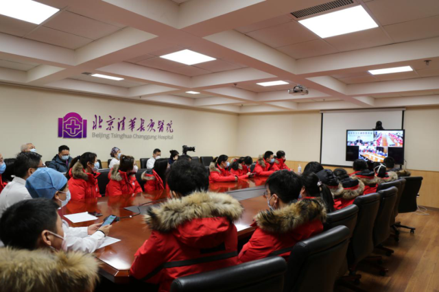 副院长魏来、张萍,外援科室、部门主管等一同为大家送行,党办、医管部、人力资源部、供应处、仪器科、工会等部门快速联合行动,为医疗队的外援工作提供全力支持。自强不息战疫情,行胜于言清华人,北京清华长庚医院的白衣战士们再踏支援征程!平安凯旋!