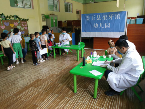 图为许嘉等三名医师深入基层开展儿童耳鼻咽喉疾病筛查