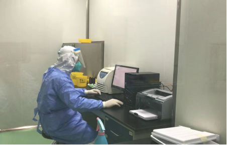 图为李润青在清华长庚—燕达医院PCR实验室首批实验的场景