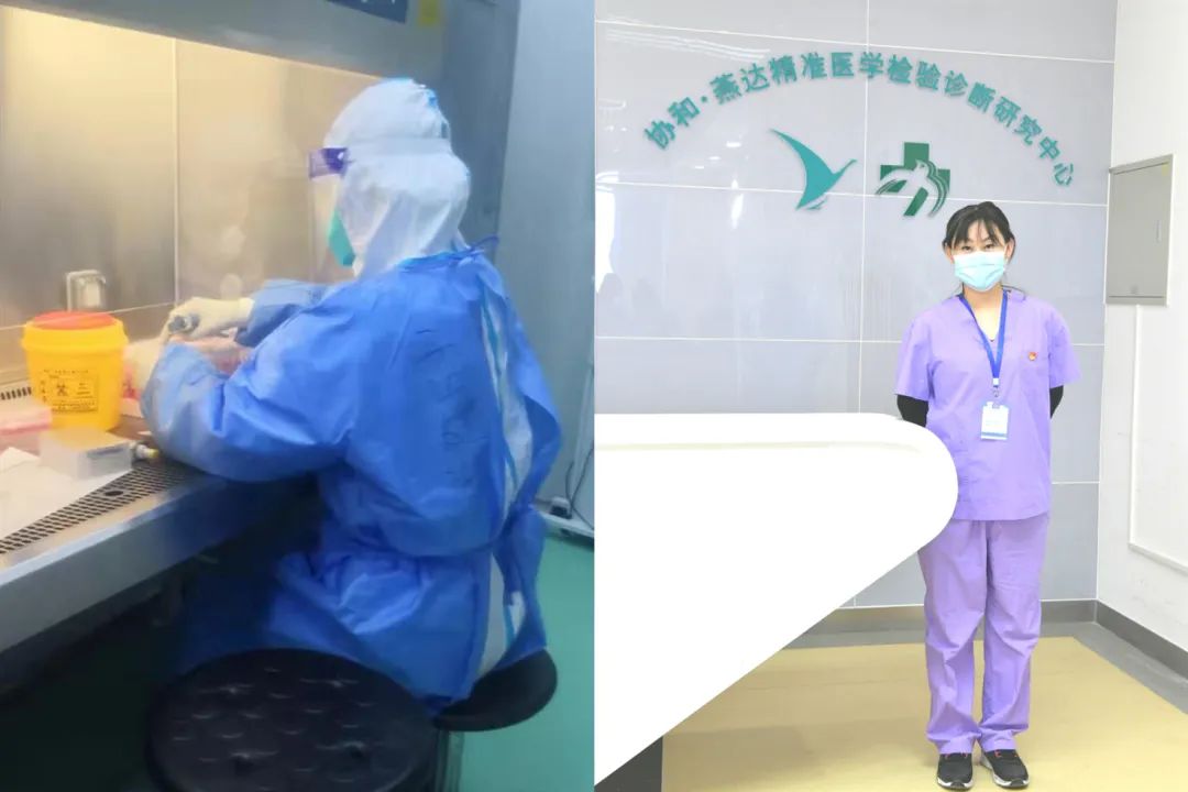 刘晨光在实验室工作时,主要负责新冠核酸样本加样,可以说是“离病毒最近”的人。从吸取样本到加入反应板中进行核酸提取,全程要做到眼不花手不抖,每一个反应板的板孔只有黄豆大小,细微之处尽显“神枪手”的功夫。“我觉得加样这个环节我还需要进一步强化,如果有任务就让我上。”孟剑湃是组里最积极主动的一个,因为在这里不用操心太多孩子、家里的事情,她可以将全部精力投入工作中。