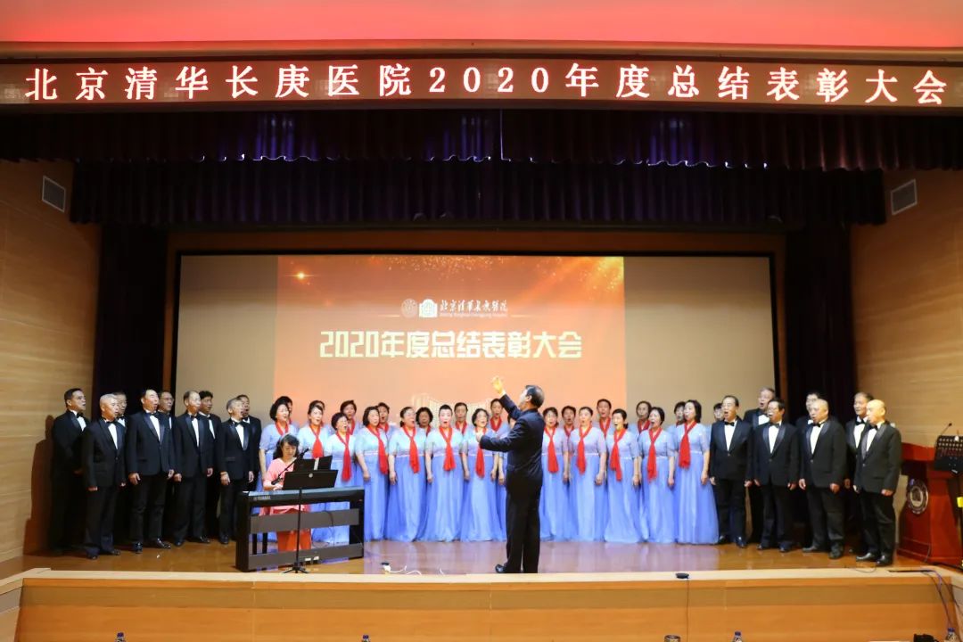 大会表彰环节,来自天北社区的民间合唱团天北之春合唱团为全体清华长庚人深情演绎了合唱歌曲《鼓浪屿之波》与《我的祖国》。合唱团演员们都是天通苑北地区的居民,平均年龄已达70岁,演唱队员主伴奏手曾是清华长庚的住院患者。指挥张友堂先生说道,“我们大部分演员与天通苑地区的老百姓一样,我们的生命健康由清华长庚护佑,我们欣喜地看到,清华长庚正在茁壮成长,我们希望医院一路向前不断发展壮大!”。清华长庚医院自开业以来,始终坚持以患者为中心的理念,在庚子年疫情期间,医院更是坚持人民至上、生命至上,坚持办人民满意的医院,患者的认可是对医院最好的褒奖,全院上下必将更加努力,办让人民放心的医院。