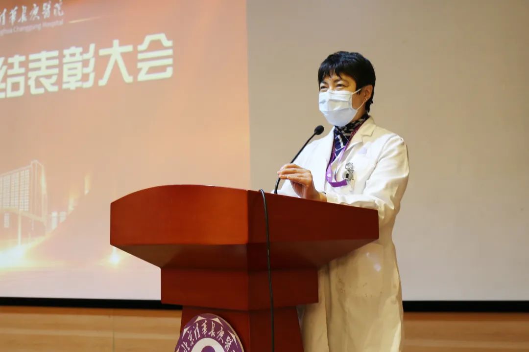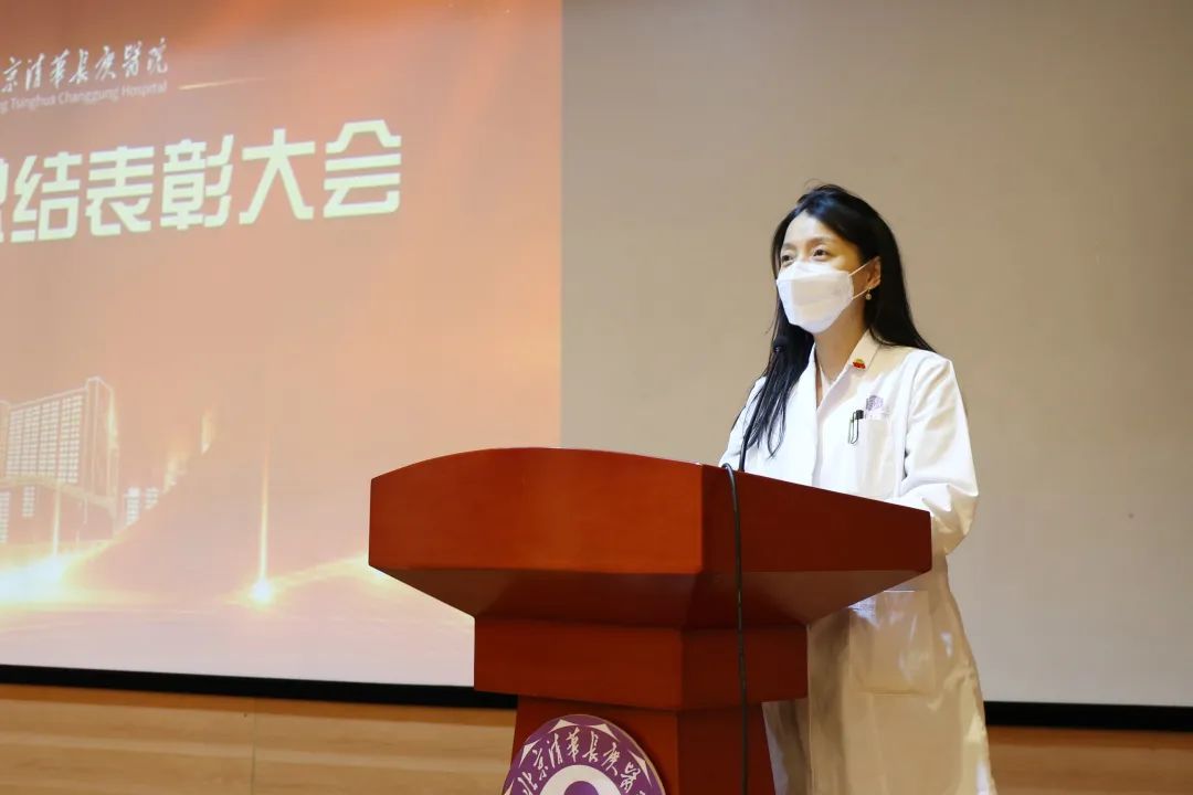 检验科主任赵秀英代表先进集体进行发言,她表示行胜于言,检以求真永远是清华检验人追求的境界,今天的荣誉赋给所有参与核酸检测的同仁,他们所展现的是清华的精神和清华的力量;胆胰外科主任卢倩、发热肠道门诊护士长张菊霞、医务管理部华昊分别代表先进个人进行发言,卢倩说到在疫情防控背景下,肝胆胰外科兼顾外出支援与固守后方,与诸位同仁共克时艰的同时,在专科与医疗精准扶贫方面,都取得了长足的发展;张菊霞讲到发热门诊是医院防控的前哨和第一道防线,发热门诊人始终严阵以待,守好家门,在新的一年将继续不辱使命,发挥发热门诊疫情防控窗口优势;华昊代表行政人员发言时提到,全员战疫,行政各部门同样坚守在第一线,确保医院在疫情零星散发时和常态化防控下平稳应对;援疆代表谢志毅因在外支援无法到场,通过视频进行发言,援疆援藏的同仁们克服苦难,为边疆带去了先进的医疗,是对自己的洗礼,也促进了民族团结,会继续发扬援疆援藏的精神,为医院的发展贡献最大的力量。
