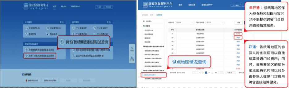③进入版块,左下角“试点地区情况查询”查询参保地统筹地区的门诊开通情况。