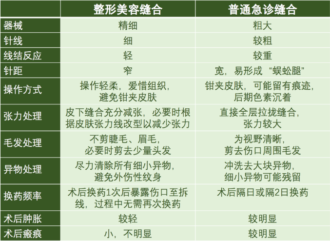 普通急诊缝合更注重效率,医生会在第一时间闭合伤口,避免污染,尽可能恢复功能,而外观通常不是首要考虑的。