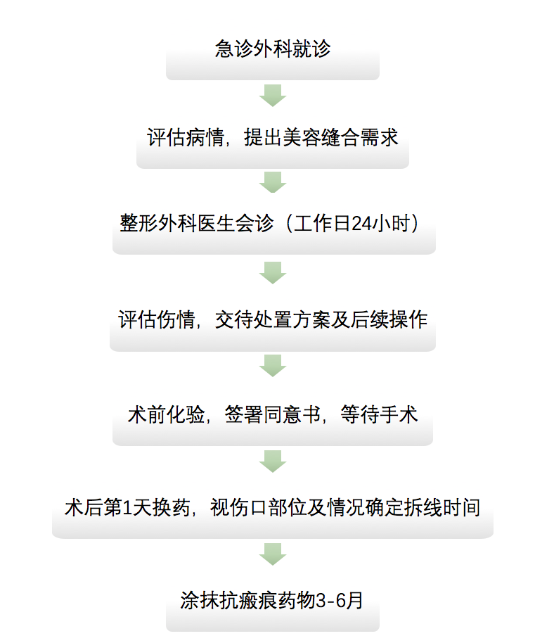 注:由于医院暂无儿外科,儿童美容缝合需要于整形外科工作日门诊挂号进行评估。