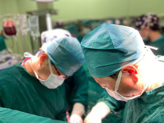 李温斌(左一)与崔晓征(右二)为患者手术