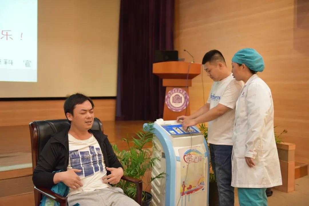 在现场“分娩疼痛模拟仪” 的体验,让准爸爸们切身感受到了分娩之痛,更加理解妻子,关爱我们的孕产妇。