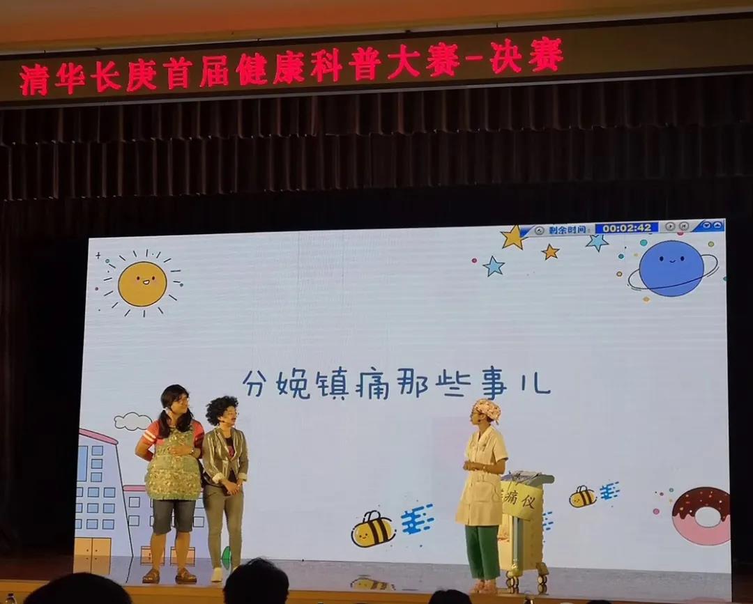 我科年轻麻醉医师编排的科普情景剧《分娩镇痛那些事儿》在科普大赛中夺得桂冠,并且跟随“水木杏林科普团”走进社区,积极宣传科普分娩镇痛。