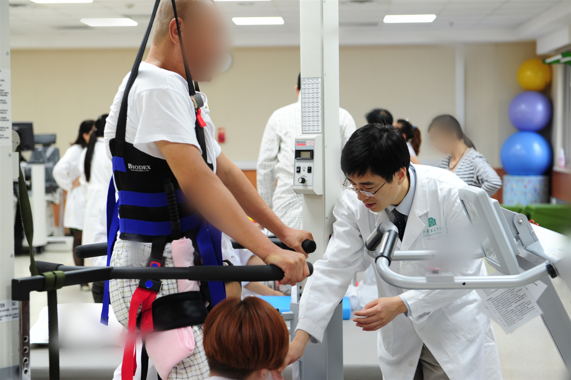 徐泉(右二)帮助患者进行康复训练