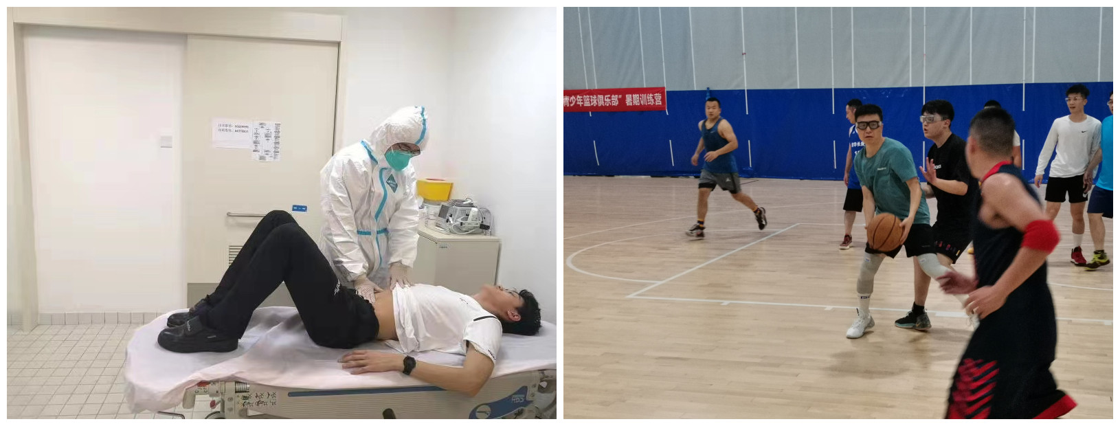 徐泉执行保障工作(左)与篮球运动(右)