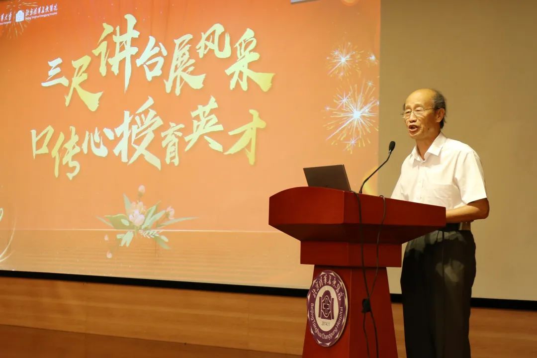 为感谢清华大学薛芳渝老师对我院青年师资队伍培育过程中做出的无私奉献,王劲代表医院向薛芳渝老师致感谢信,市青教赛获奖者章薇、谢颖向其献花。《三尺讲台展风采、口传心授育英才》,薛芳渝老师再次给全院师生带来印象深刻了一堂课,孜孜不倦感染着每一位青年教师的心。