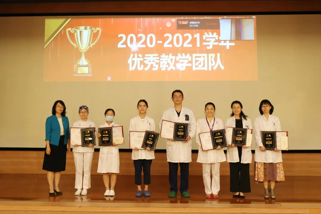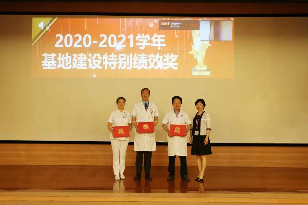 为表彰教学基地建设取得的突出成绩,周碧琴为英国爱丁堡皇家外科学员普通外科培训基地、皮肤科住培基地和脑卒中专科护士临床教学基地颁发“基地建设特别绩效奖”。郑卓肇和叶京英为2020-2021学年在校院两级教学专项比赛获奖人员颁奖。